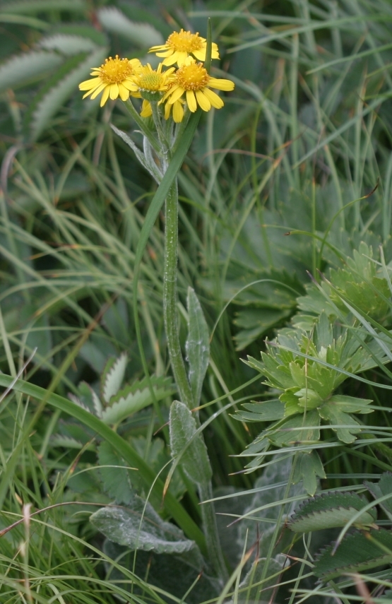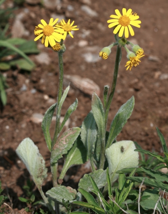 국화과의 여러해살이풀. 식물체에 누운 털이 빽빽이 나고 줄기는 곧추 서며 높이 30cm이다. 뿌리잎은 모여 나고 잎꼭지가 길며 잎몸은 닭알모양 또는 타원형(길이 5~10cm)이다. 줄기잎은 어긋나게 성기게 붙고 잎꼭지가 없으며 긴 타원형버들잎모양인데 량끝은 둔하거나 좀 좁으며 변두리에는 고르롭지 못한 에움이 있으며 질은 두껍다. 7~8월경 줄기웃부분에 노란 꽃이 머리모양꽃차례(직경 3cm)를 이루며 핀다. 머리모양꽃차례는 고른우산꽃차례모양으로 배치된다. 꽃싼잎은 종모양이며 길이는 1cm정도이다. 꽃싼잎은 버들잎모양이며 꽃차례주변의 혀모양꽃은 누른색이고 가운데 작은 꽃은 관모양이다. 열매는 여윈열매이며 우산털은 검은색을 띤 흰색이다.