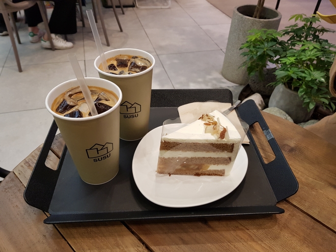우리가 주문한 아이스 아메리카노와 당근케이크이다.