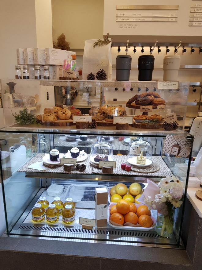 카운터 옆 쇼케이스 안에는 조각케이크와 스콘, 쿠키 등도 판매하고 있었다.