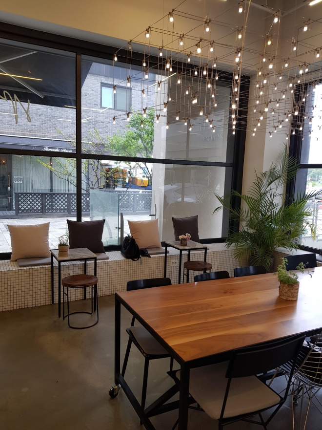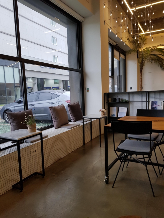 창가 자리에 앉아 있다가 불편해 이 넓은 테이블로 자리를 옮길까 하다가