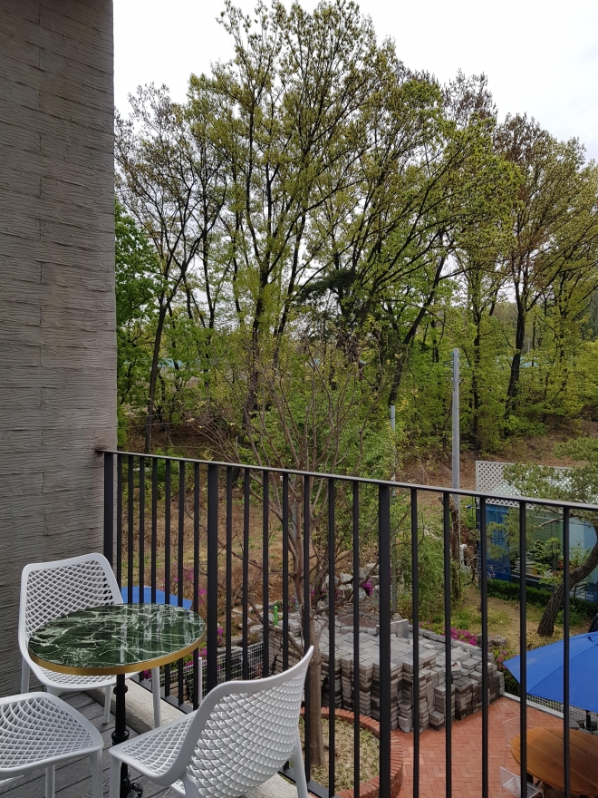 이날 날이 흐리기는 했지만 추운 날씨는 아니라 테라스에 자리를 잡았다.