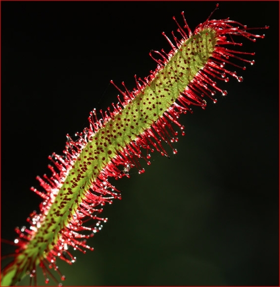 끈끈이주걱과의 여러해살이 벌레먹이풀. 꽃줄기는 잎아귀에서 곧게 나오고 높이 10~20cm인데 잎보다 길다. 뿌리목에서 나온 잎은 모여 나고 잎꼭지가 길며 줄모양의 주걱모양이며 길이 2~4cm, 너비 2.5~4mm이다. 끝은 둔하고 밑부분은 점차 좁아 져서 잎꼭지로 되며 웃면에 붉은보라색의 샘털이 빽빽하고 끈기가 있으며 여기에 작은 벌레가 붙으면 소화흡수한다. 8월경 꽃줄기끝에 옆으로 기울어 진 송이꽃차례가 이삭모양을 이루고 흰색의 작은 꽃이 핀다. 꽃이삭은 처음에 한쪽으로 말리나 꽃이 피면 곧바로 선다. 꽃받침은 종모양이며 5개로 깊이 갈라 지고 갈라 진 쪼각은 긴 타원형이며 짧은 샘털이 있다. 꽃잎은 5개이며 주걱모양이다. 5개의 수꽃술과 1개의 암꽃술이 있고 암꽃술대는 2~3개로 깊이 갈라 진다. 열매는 버들잎모양의 튀는열매이며 남아붙은 꽃받침잎이 있고 익으면 세쪽으로 버그러지며 작은 씨앗이 들어 있다. 끈끈이주걱보다 잎이 길다.