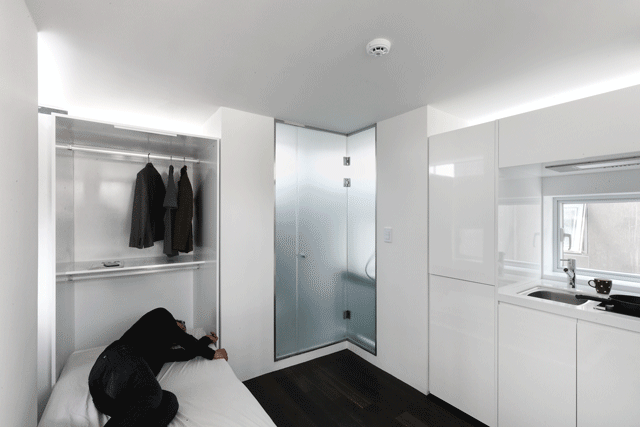 작은 원룸 형태의 방이 꽉꽉 들어가 있는 건물이 많습니다.