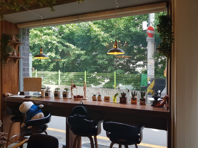 그다지 밖의 풍경이 예쁘지는 않지만 나무가 있으니 나름 싱그럽다고 할까