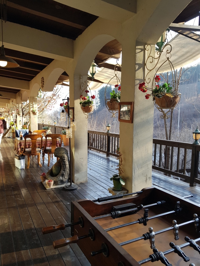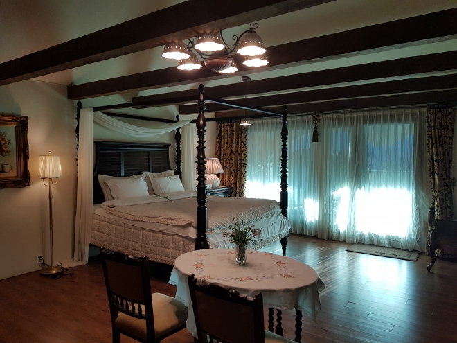 객실 키를 받기 위해 운영하고 있는 카페로 입장